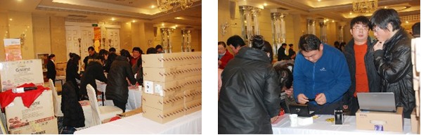 下午兩時(shí)許,企業(yè)家們陸續(xù)到來,簽到、簽名、進(jìn)入會場。會前,企業(yè)家們對禮品兌換區(qū)產(chǎn)生了極強(qiáng)的興趣,大家顧不上入座就紛紛涌向咨詢臺詢問促銷方案,續(xù)費(fèi)、領(lǐng)禮品、兌積分,忙個(gè)不亦樂乎。